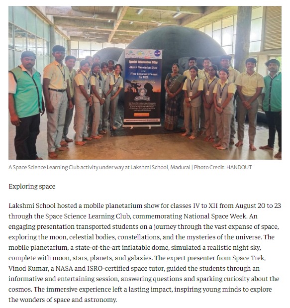 Recognized as ISRO's Space Tutor to familiarize Space Education in India